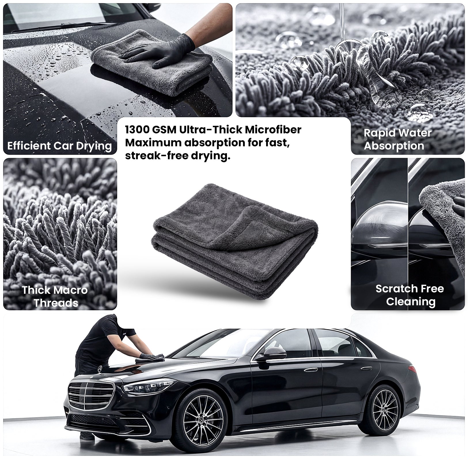Klyro 1300 GSM Microfiber Car Drying Towel – Ultra Absorbent 40×60 cm